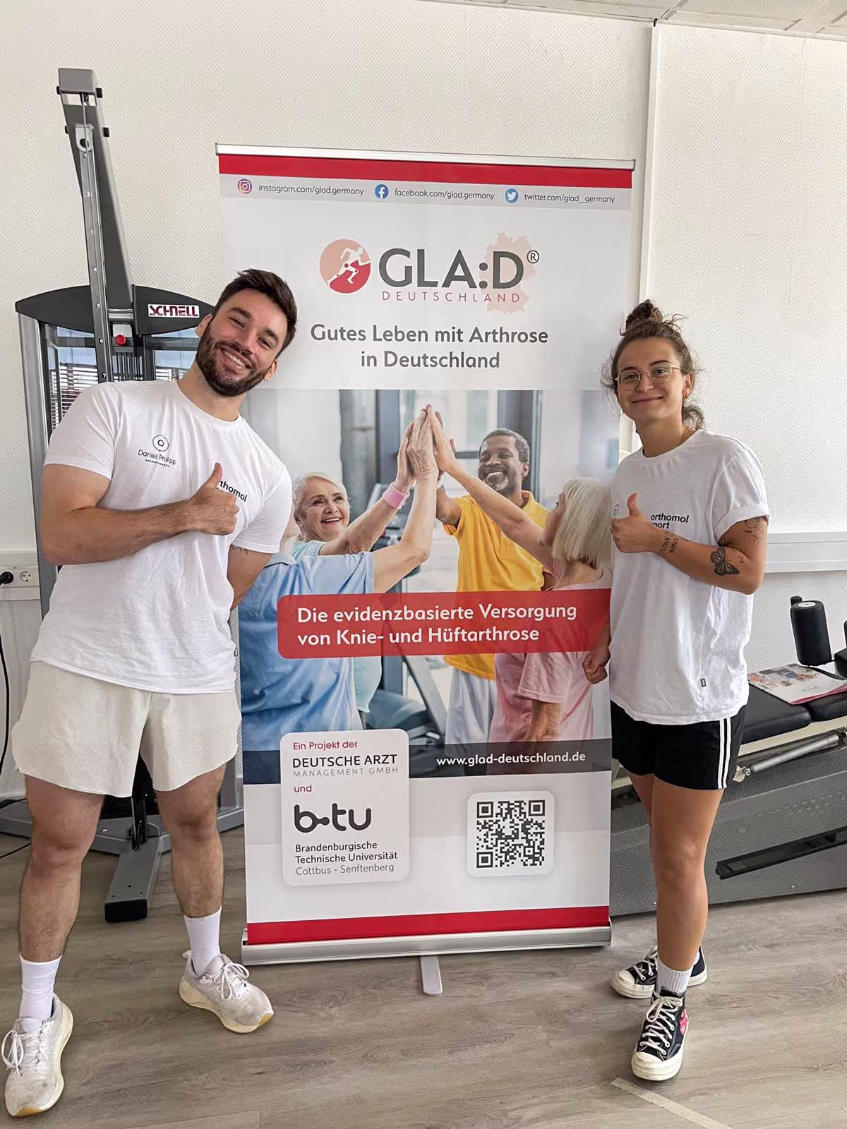 Das GLA:D Programm (Good Life with osteoArthritis in Denmark) wurde entwickelt, um Menschen mit Arthrose eine effektive, evidenzbasierte Behandlung anzubieten. Das Ziel des Programms ist es, Schmerzen zu lindern, die Beweglichkeit zu verbessern und den Patient*innen zu einem aktiveren Lebensstil zu verhelfen. Es basiert auf den aktuellsten internationalen Best-Practice-Richtlinien für Arthrose-Therapien.